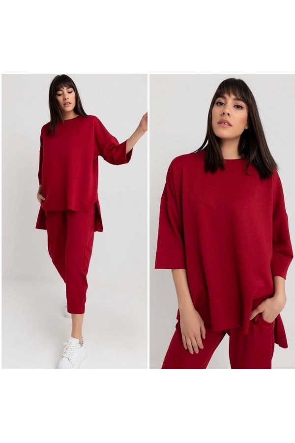Kadın Salaş Kesim Farkir Kol Mira Kumaş Ikili Takım Bordo