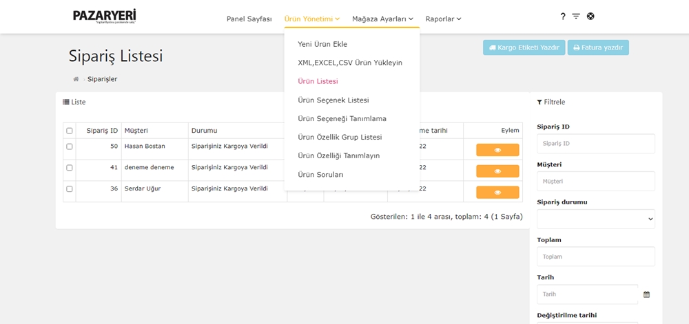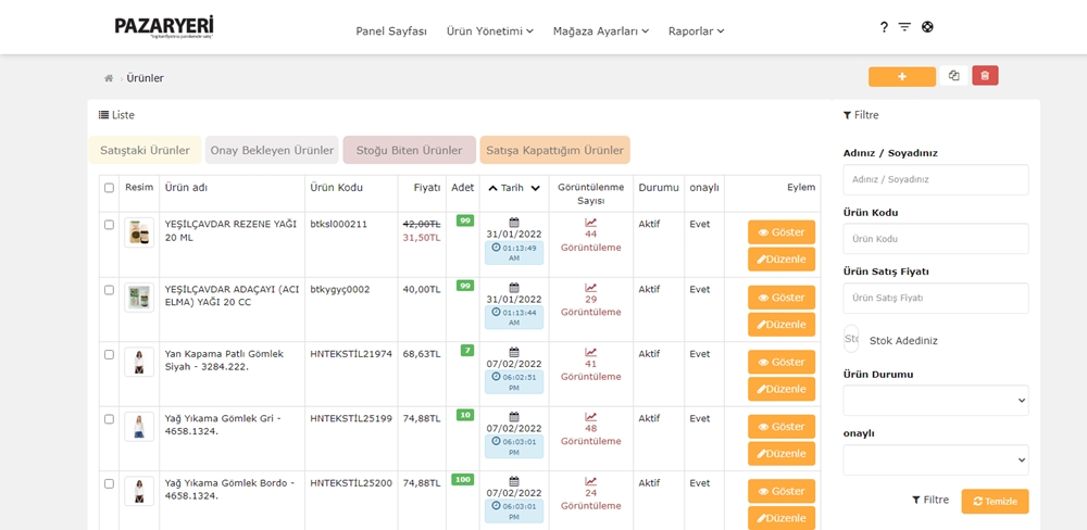 Mağaza paneliniz üzerinde her mağazanın listeleyebileceği ürün sayısı sınırsızdır.