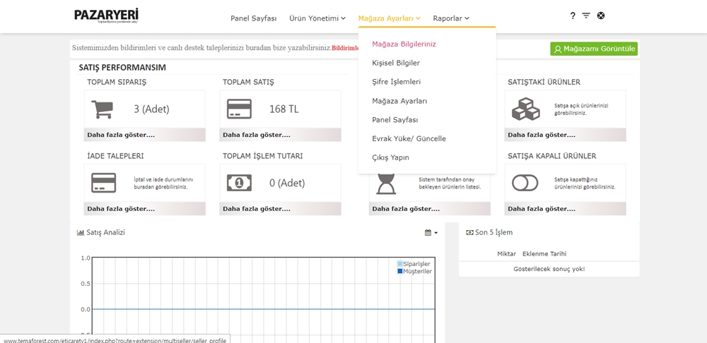 Üst menüsündeki Mağaza Ayarları > Mağaza Bilgilerim bölümünden bilgilerinizi güncelleyebilirsiniz.